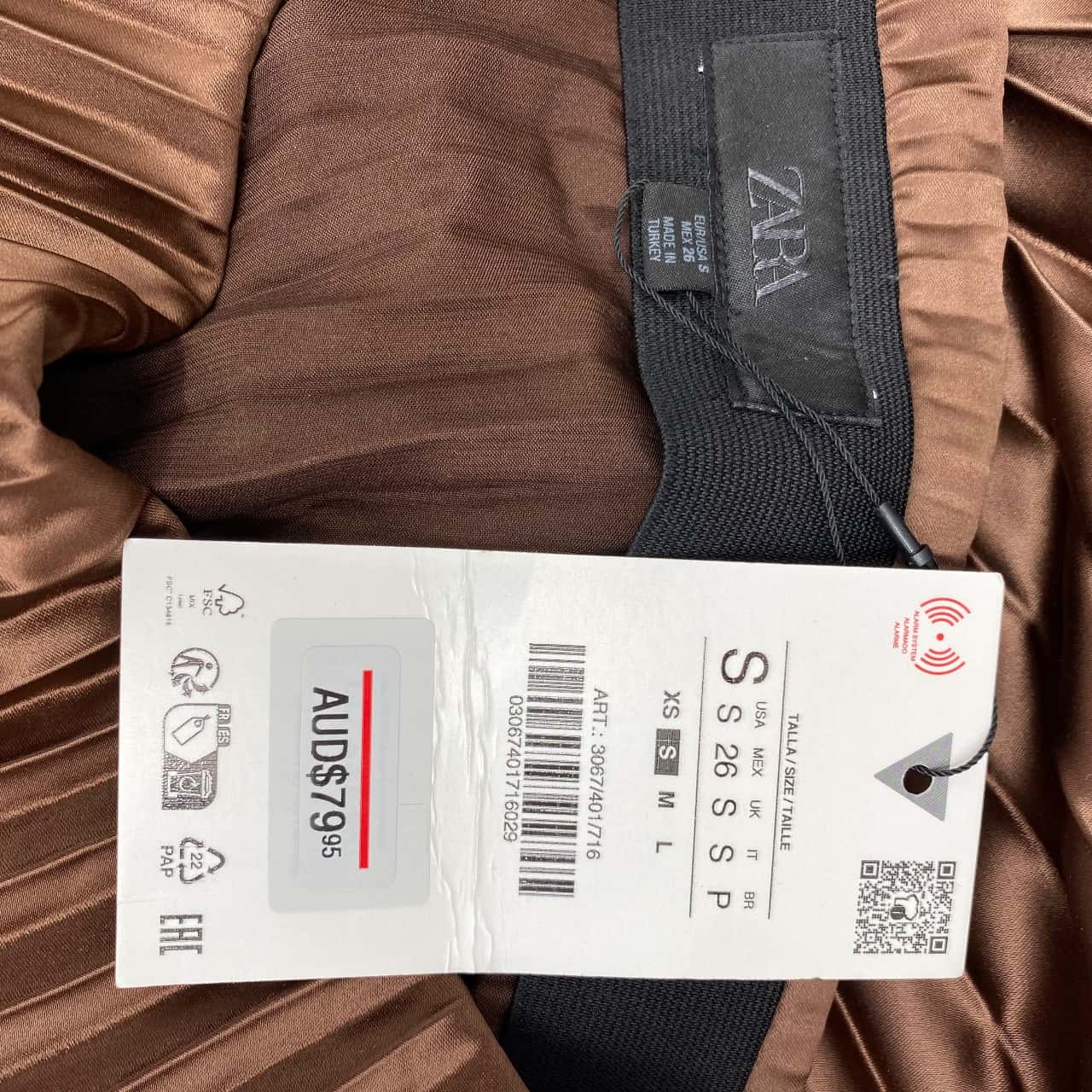 Zara Womens Size S Pleated Skirt Brown